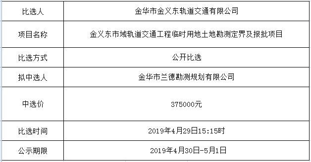 金華市金義東軌道交通有限公司運(yùn)營2026-2027年度活動實(shí)施服務(wù)機(jī)構(gòu)框架協(xié)議項(xiàng)目中標(biāo)候選人公示