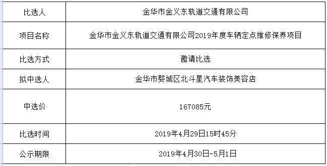 金華市金義東軌道交通有限公司運(yùn)營2026-2027年度活動(dòng)實(shí)施服務(wù)機(jī)構(gòu)框架協(xié)議項(xiàng)目中標(biāo)候選人公示