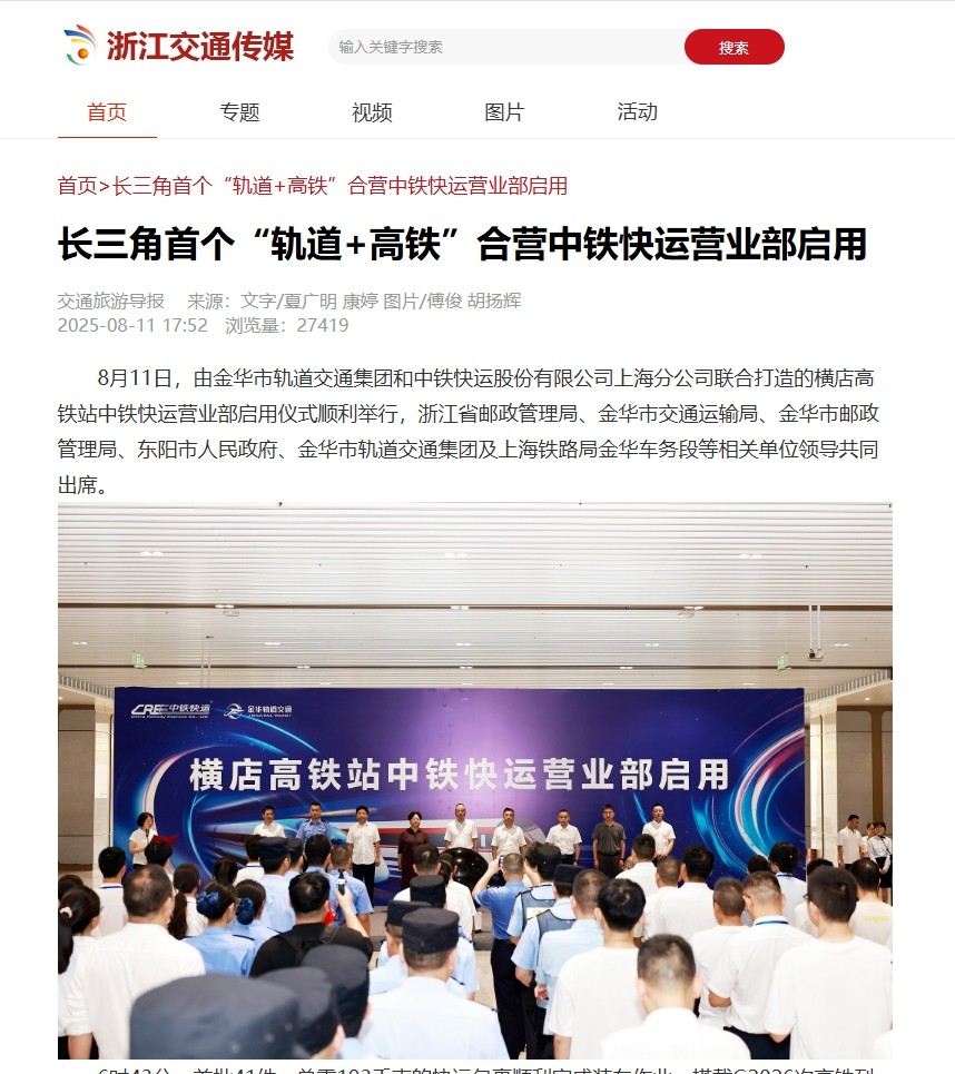 人民網(wǎng)、央廣網(wǎng)、改革網(wǎng)、《工人日報》客戶端、中央廣電總臺國際在線、《浙江日報》、浙江衛(wèi)視《聯(lián)播快訊》、潮新聞客戶端、浙江交通之聲、交通旅游導(dǎo)報、金華日報等國家級、省市級主流媒體相繼報道相關(guān)內(nèi)容。