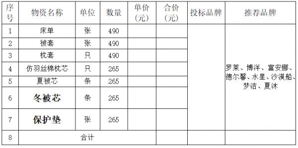致:各參選人 比選人現(xiàn)將參選人提出的問題及招標(biāo)文件需要澄清、修改、補(bǔ)遺、答疑的內(nèi)容,統(tǒng)一答復(fù)你們,請認(rèn)真研究。本次澄清、修改、補(bǔ)遺、答疑若與招標(biāo)文件不一致之處,以本次補(bǔ)充文件為準(zhǔn)。一、問:報(bào)價(jià)明細(xì)表中有推薦品牌,其他品牌是否可以參與? 推薦品牌均為家紡產(chǎn)品的品牌,而貴公司所需產(chǎn)品均為酒店布草產(chǎn)品,與家紡產(chǎn)品存在差異,且一般酒店布草的同質(zhì)量產(chǎn)品在技術(shù)標(biāo)準(zhǔn)上均優(yōu)于甲方產(chǎn)品。建議貴公司可以放開參與品牌的范圍,允許類似我司這樣的專業(yè)酒店布草生產(chǎn)廠家參加。答:甲方推薦品牌的,供貨產(chǎn)品品牌須在技術(shù)需求中推薦品牌范圍內(nèi)或相當(dāng)于(或優(yōu)于)推薦品牌。